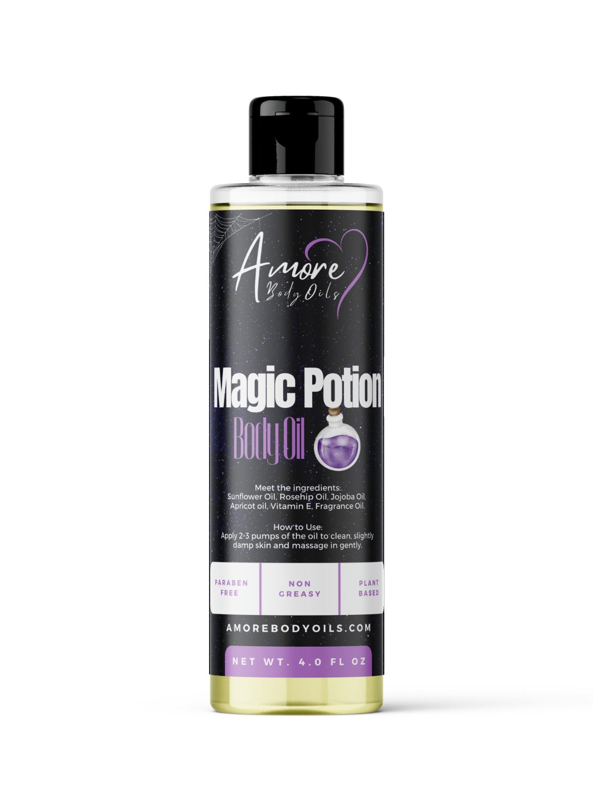 Unveil the magic of radiant, glowing skin with Magic Potion Body Oil from Amore Body Oils. This luxurious, plant-based formula is crafted with a nourishing blend of Sunflower Oil, Rosehip Oil, Jojoba Oil, Apricot Oil, and Vitamin E to deeply moisturize and soften while leaving your skin silky-smooth and non-greasy.